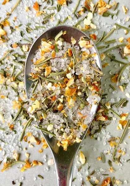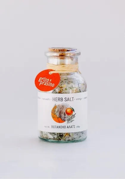 Θαλασσινό αλάτι με πορτοκάλι, θυμάρι και δενδρολίβανο.