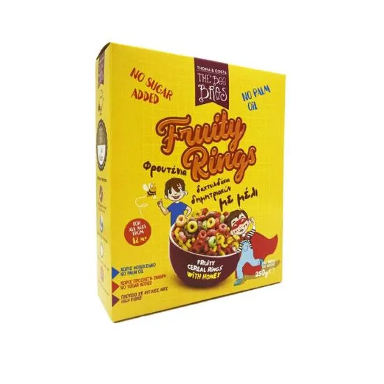 Τραγανά δαχτυλίδια δημητριακών με φρούτα και μέλι για να απολαμβάνουν οι μικροί μας φίλοι στο πρωινό ή σε οποιαδήποτε άλλη στιγμή της ημέρας. Η εταιρεία THE BEE BROTHERS κατάφερε να δημιουργήσει μια υγιεινή επιλογή της αγαπημένης τους λιχουδιάς.