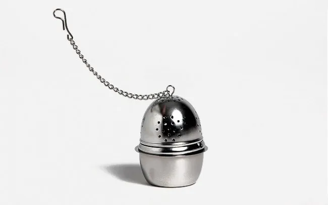 Ανοξείδωτο μεταλλικό φίλτρο σε σχήμα αυγού με αλυσίδα.