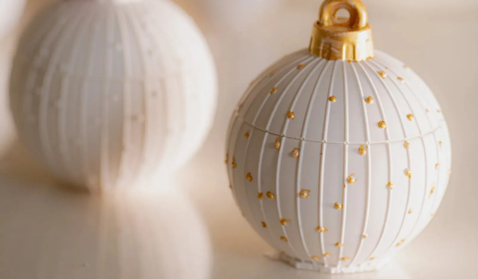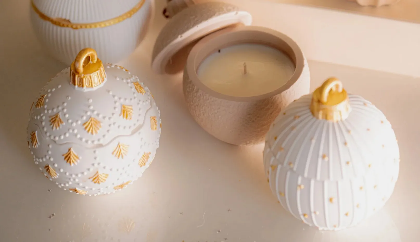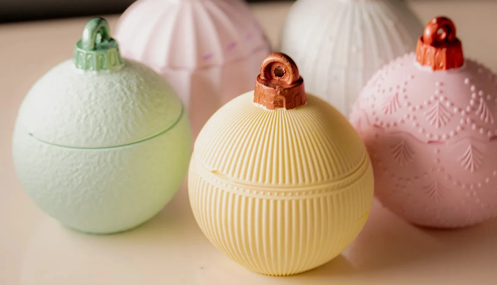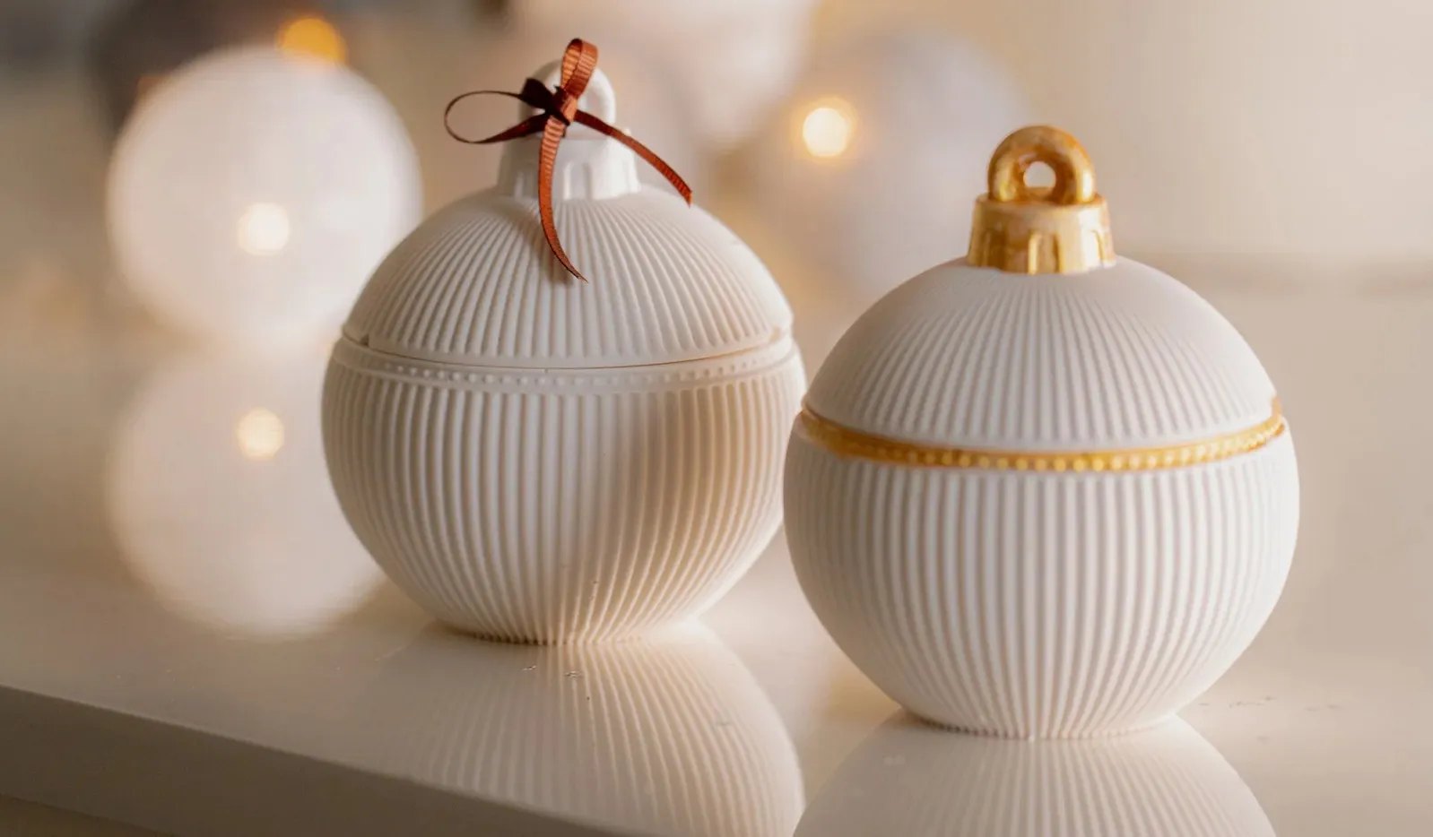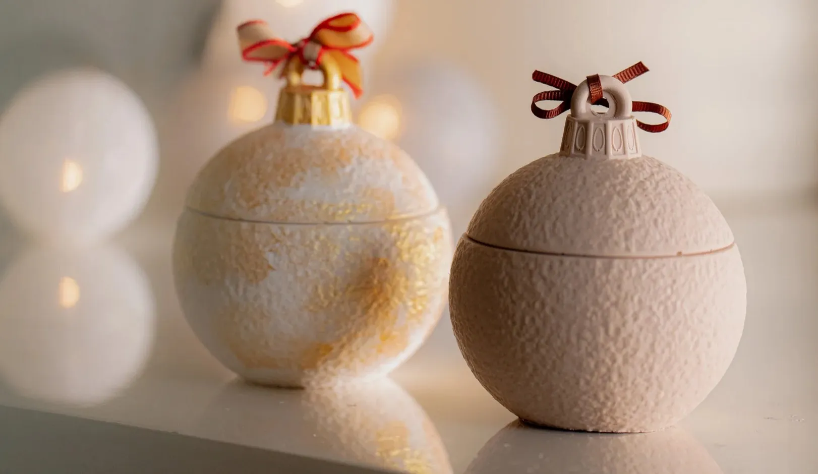 Χειροποίητες από οικολογική ρητίνη, αυτές οι μπάλες περιέχουν 130 γρ. κερί σόγιας μαζί με τα όνειρα της παιδικής μας ηλικίας — έναν τρόπο να βλέπουμε τον κόσμο μέσα από τη μαγεία μιας χριστουγεννιάτικης μπάλας.