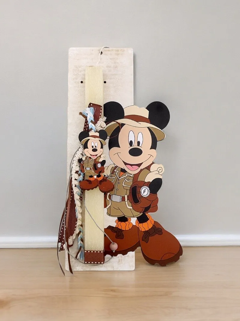 Η λαμπάδα είναι δεμένη στην αντίστοιχη ξύλινη βάση και στην τιμή.