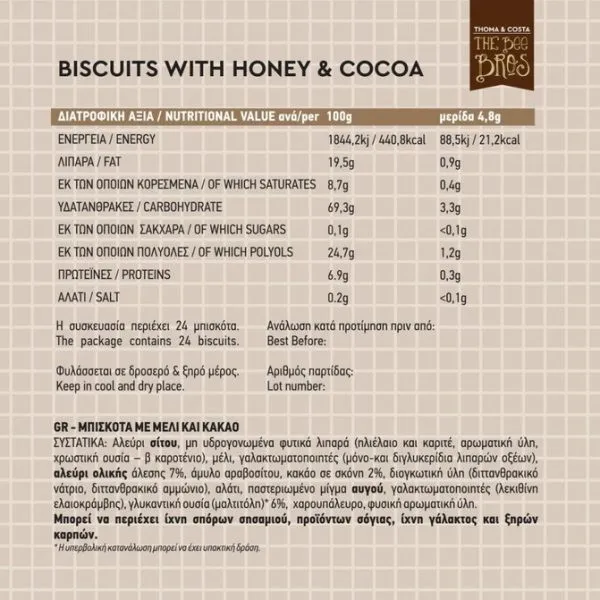 Μπισκότα με Μέλι και Κακάο 115gr The Bee Bros