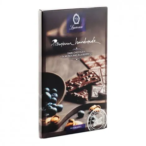 Ανακαλύψτε μια premium χειροποίητη σοκολάτα εξαιρετικής ποιότητας, εμπλουτισμένη με ολόκληρα αμύγδαλα και απολαυστικά blueberries.