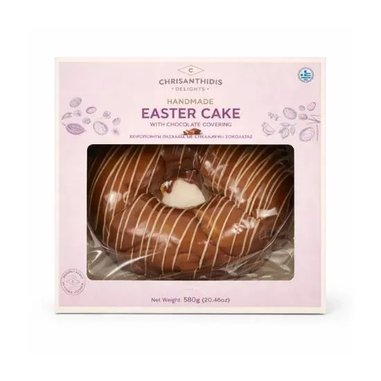Το Πασχαλινό Τσουρέκι με Επικάλυψη Σοκολάτας Chrisanthidis Delights συνδυάζει την αυθεντική ελληνική παράδοση με την απολαυστική γεύση της σοκολάτας.