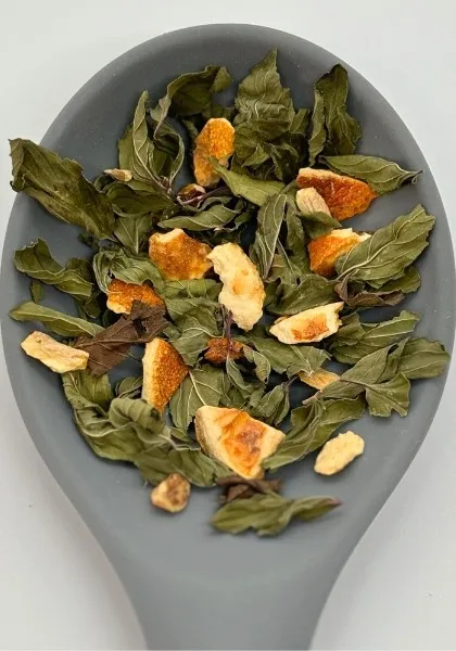 Εδώ έχουμε ένα μίγμα με ένταση που θα λατρέψει σίγουρα όποιος αγαπά το ginger. Ιδίως την αληθινή του γεύση. Ούτε πολύ απαλή ούτε να τα καλύπτει όλα. Η τζιτζιμέντα πορτοκάλι είναι το βοτανικό τσάι που φανταζόμαστε σε μπαρ αντί για ποτό αλλά και σε τραπέζι αντί για χωνευτικό απεριτίβο.